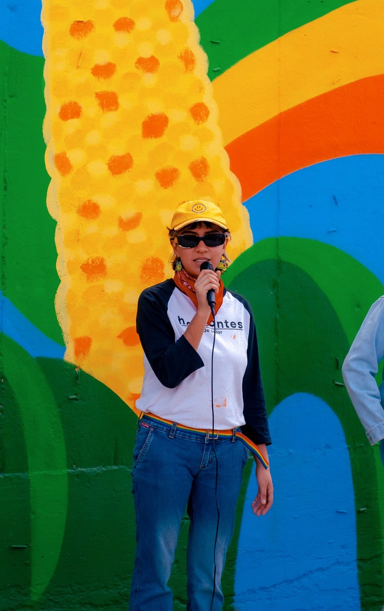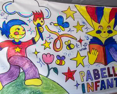 La obra se convirtió en un espacio abierto de exploración creativa, donde niñas, niños y público de todas las edades intervinieron libremente, llenando el mural de color y espontaneidad. Un ejercicio colectivo que celebró la imaginación y la alegría compartida.