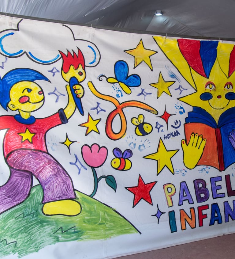Mural participativo en el Pabellón Infantil de la Feria del Libro de Tijuana, realizado junto a la Secretaría de Cultura de Tijuana.